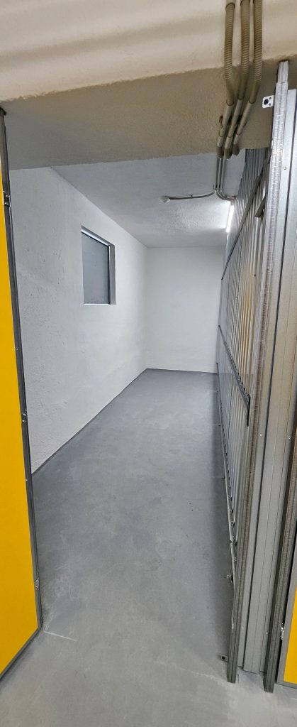 Sklad s rozlohou 8m2 má rozmery 5,3m x 1,5m. Nachádza sa v suteréne s prístupom po schodoch.